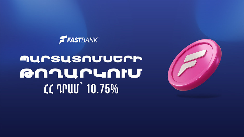 Ֆասթ Բանկը թողարկել է 12 մլրդ ՀՀ դրամ ընդհանուր ծավալով դրամային անվանական արժեկտրոնային պարտատոմսեր։ Պարտատոմսերը տեղաբաշխվում են նոյեմբերի 10-ից 2026 թվականի մարտի 10-ը 100,000 ՀՀ դրամի անվանական արժեքով, 10.75% տարեկան տոկոսային եկամտաբերությամբ։Պարտատոմսերը թողարկվել են 24 ամիս (10․11․2027թ․) մարման ժամկետով արժեկտրոնի կիսամյակային վճարման պարբերականությամբ։ Այս ժամկետայնության պարտատոմսերն ազատված են եկամտային հարկից։Բանկից հայտնում են, որ ձեռք բերված պարտատոմսերի վերաբերյալ ողջ տեղեկատվությունը հասանելի է Ֆասթ Բանկի հավելվածում։Պարտատոմսերը հնարավոր է ձեռք բերել Ֆասթ Բանկի 24/7 գործող 38 մասնաճյուղերից որեւէ մեկում՝ ներկայացնելով անձնագիր, սոցիալական կամ նույնականացման քարտ, ինչպես նաեւ բանկային հաշվի տվյալներ։Այն դեպքում, երբ հաճախորդն աշխատանքային օրվա մինչեւ ժամը 16։00-ն է լրացնում հայտերը եւ ապահովում դրամական միջոցներն արժեթղթերի ձեռքբերման համար, ապա պարտատոմսի գինը հաշվարկվում է տվյալ օրվա գնով, հակառակ դեպքում՝ հաջորդ աշխատանքային օրվա։ՀՀ ԿԲ նախագահի 23.07.2025թ․-ի թիվ 1/249 Ա որոշմամբ գրանցվել է «Ֆասթ Բանկ» ՓԲԸ պարտատոմսերի Ծրագրային ազդագիրը։ՀՀ ԿԲ նախագահի 29.08.25թ-ի թիվ 1/312Ա որոշման համաձայն գրանցվել է Ֆասթ Բանկ ՓԲԸ-ի Պարտատոմսերի Ծրագրային ազդագրի լրացումը:ՀՀ ԿԲ նախագահի 30.09.25թ-ի թիվ 1/351Ա որոշման համաձայն գրանցվել է Ֆասթ Բանկ ՓԲԸ-ի Պարտատոմսերի Ծրագրային ազդագրի լրացումը:Ծրագրային ազդագրի, Ազդագրի լրացման եւ Թողարկման վերջնական պայմանների էլեկտրոնային տարբերակը հնարավոր է բեռնել հետեւյալ հղումով, իսկ թղթային տարբերակները` այցելելով Ֆասթ Բանկի գլխամասային գրասենյակ կամ Բանկի ցանկացած մասնաճյուղ։Ֆասթ Բանկը թվային բանկ դառնալուն միտված ընկերություն է, որը ներկայացված է Երեւանում եւ Հայաստանի բոլոր մարզերում։Ֆասթ Բանկը վերահսկվում է ՀՀ Կենտրոնական բանկի կողմից։ Tweet Դիտում՝ 1302
