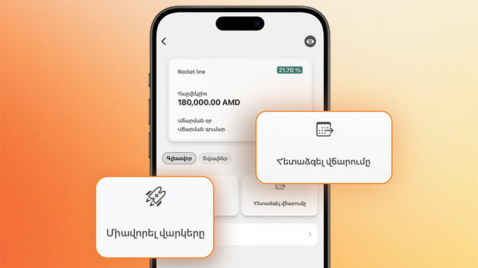 Idram&IDBank հավելվածը կրկին թարմացվել է․ այս անգամ նորությունը կհեշտացնի հաճախորդների առօրյան: Ինչպես յուրաքանչյուր նորության, այնպես էլ այս թարմացման հիմքում օգտատերերին լավագույն ծառայությունները մատուցելու գաղափարն է։ Վերջին թարմացմամբ (iOS – 4.0.97 և Android – 3.7.98) կարելի է թե՛ հետաձգել Rocket Line վարկերի վճարումը, թե՛ միավորել մի քանի Rocket Line վարկ մեկում։Վճարման հետաձգումը իրենից ենթադրում է ընտրված վարկի մնացորդային պարտքի չափով նոր Rocket Line վարկի տրամադրում և ընտրված վարկի ավտոմատ մարում։ Նոր վարկը նույնպես պատկերվում է հավելվածի Բանկինգի Rocket Line վարկեր բաժնում՝ Rocket Line (վճարումը հետաձգված) անվանմամբ։Ինչպե՞ս հետաձգել վարկը.• Rocket Line վարկի մանրամասներ պատուհանից սեղմե՛ք «Հետաձգել վճարումը» կոճակը,• նոր պատուհանում ծանոթացե՛ք ծառայության պայմաններին և տվե՛ք համաձայնություն՝ սեղմելով «Հաստատել» կոճակը,• հաջորդ քայլով դիտե՛ք նոր վարկի մանրամասները, տվե՛ք համաձայնություն բոլոր դրույթներին։Իսկ Rocket Line-ի միավորումը իրենից ենթադրում է ընտրված վարկերի մնացորդային պարտքի չափով նոր Rocket Line վարկի տրամադրում և ընտրված վարկերի ավտոմատ մարում։ Նոր վարկը կրկին կպատկերվի հավելվածի Բանկինգ բաժնի Rocket Line վարկեր բաժնում՝ Rocket Line (միավորված) անվանմամբ։Ինչպե՞ս միավորել վարկերը․• գլխավոր էջում սեղմե՛ք Rocket Line-ի սահմանաչափի վերևի + կոճակը,• նոր պատուհանում սեղմե՛ք «Միավորել վարկերը», ապա ընտրե՛ք Rocket Line-երը, որոնք ցանկանում եք միավորել,• ընտրե՛ք նոր Rocket Line-ի ժամկետը, տվեք անհրաժեշտ համաձայնությունը։Հիշեցնենք, որ Ձեր Rocket Line սահմանաչափով կարող եք վճարել ավելի քան 23․500 վաճառակետերում, այսինքն՝ ամենուր, ուր կա Իդրամով վճարման հնարավորություն, իսկ Rocket Line 0%-ով վճարելու հնարավորությամբ վաճառակետերի թիվը գերազանցում է 10․000-ը։ Tweet Դիտում՝ 11140