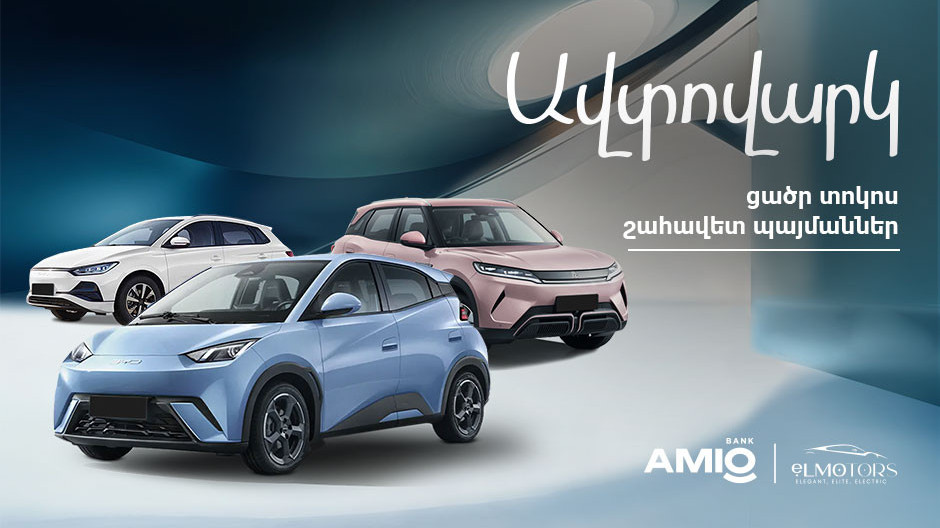 Ամիօ բանկը, համագործակցելով El Motors ավտոսրահի հետ, առաջարկում է շահավետ պայմաններ BYD էլեկտրամեքենաների ամենապահանջված մոդելների գնման համար։Բանկից հայտնել են, որ այժմ BYD E2, BYD Yuan Up եւ BYD Seagull մոդելները El Motors ավտոսրահից հնարավոր է ձեռք բերել հետեւյալ պայմաններով․• տարեկան 9% տոկոսադրույք (փաստացի՝ 9.36-11.35%)• մինչեւ 60 ամիս մարման ժամկետ• ընդամենը 10% կանխավճար«Սա կատարյալ հնարավորություն է ժամանակակից, շրջակա միջավայրի նկատմամբ հոգատար եւ տեխնոլոգիապես զարգացած մեքենա ձեռք բերելու համար՝ առավել հասանելի ֆինանսական պայմաններով»,- ասվում է բանկի հաղորդագրությունում:Հետաքրքրված անձինք կարող են լրացնել հայտը, որից հետո մասնագետները կապ կհաստատեն նրանց հետ կամ այցելել Ամիօ բանկի ցանկացած մասնաճյուղ։Բանկը վերահսկվում է ՀՀ ԿԲ կողմից: Tweet Դիտում՝ 2270