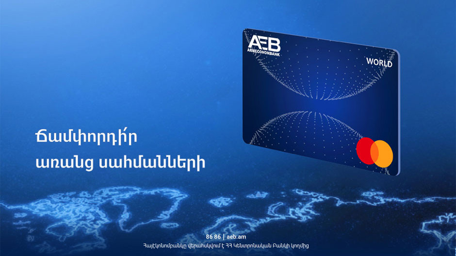 Հայէկոնոմբանկը շարունակում է ընդլայնել իր պրեմիում ծառայությունների շրջանակը և ներկայացնում է նոր Mastercard World քարտը, որը միավորում է հարմար վճարումներ կատարելու և ճամփորդական մի շարք առավելություններից օգտվելու հնարավորությունները։ Mastercard World-ի հիմնական առավելություններն են.• 0.5-1% cashback ՀՀ տարածքում և արտասահմանում կատարված յուրաքանչյուր անկանխիկ գործարքի դիմաց,• անվճար մուտք oդանավակայանների Lounge Key բիզնես սրահներ տարեկան 6 անգամ (ներառյալ` հյուրի մուտքի հնարավորություն),• անվճար Fast Track ծառայություն օդանավակայաններում ՝ տարեկան 6 անգամ (ներառյալ` հյուրի մուտքի հնարավորություն),• ինտերնետ ռոումինգ՝ 1 GB անվճար և 15% զեղչ այլ փաթեթների համար,• Concierge ծառայություն 24/7 ռեժիմով։Քարտապաններին հասանելի է նաև վարկային գիծ դրամով՝ ընդամենը 14% տարեկան անվանական տոկոսադրույքով (փաստացի՝ 14.93%) առանց լրացուցիչ ծախսերի։Mastercard World-ն ստեղծված է այն հաճախորդների համար, ովքեր գնահատում են հարմարավետությունը, վճարումների արագությունը և հատուկ առաջարկները՝ դարձնելով յուրաքանչյուր պահ և յուրաքանչյուր ուղևորություն ավելի հարմարավետ ու հաճելի։ Մանրամասներին կարելի է ծանոթանալ այստեղ։Հայէկոնոմբանկը վերահսկվում է Կենտրոնական բանկի կողմից։ Tweet Դիտում՝ 5885
