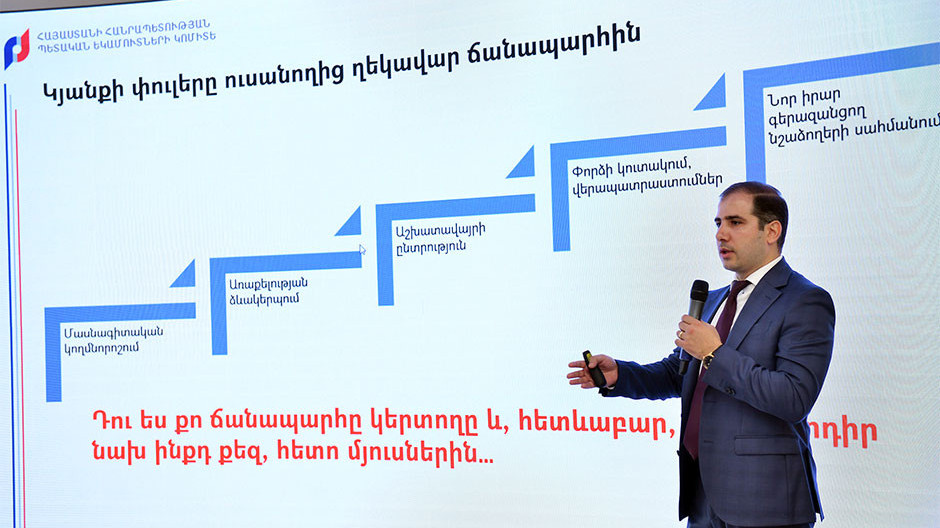 Պետական եկամուտների կոմիտեի նախագահ Էդուարդ Հակոբյանը եւ Հայաստանի պետական տնտեսագիտական համալսարանի ռեկտոր Արմեն Գրիգորյանը ստորագրել են համագործակցության հուշագիր:ՊԵԿ-ից հայտնել են, որ նախատեսվում է մշակել եւ իրագործել ՀՊՏՀ բակալավրի եւ մագիստրատուրայի կրթական ծրագրեր, ակադեմիական կազմի վերապատրաստման գործընթացում ներգրավել Կոմիտեի մասնագետներին, կազմակերպել գիտաժողովներ, ֆորումներ եւ այլ գիտական միջոցառումներ, ստեղծել նաեւ համատեղ էլեկտրոնային գրադարաններ եւ ընթերցասրահներ։ ՊԵԿ նախագահը բուհում հանդես է եկել «Ուսանողից՝ ղեկավար» թեմայով բաց երկխոսության ձեւաչափով բանախոսությամբ եւ զրուցել ուսանողների հետ: ՊԵԿ նախագահն առանձնահատուկ կարեւորել է կրթության եւ գիտելիքի շարունակական կուտակման, ինչպես նաեւ անձնական առաքելության ձեւակերպման անհրաժեշտությունը՝ մասնագիտական զարգացման եւ առաջնորդության ճանապարհին։«Իմ անցած ճանապարհը ցույց է տալիս, որ մասնագիտական աճին կարելի է հասնել միայն անձնական հանձնառության եւ հետեւողական աշխատանքի շնորհիվ։ Անհրաժեշտ է մշտապես ձգտել ինքնազարգացման, գիտելիքի ու փորձի կուտակման, իսկ պետական համակարգում աշխատելը յուրահատուկ հնարավորություն է ընձեռում ծառայելու հանրությանը եւ նպաստելու երկրի զարգացմանը»,- ասել է Էդուարդ Հակոբյանը։ ՀՊՏՀ ռեկտոր Արմեն Գրիգորյանը կարեւորել է պետական հատվածի հետ համագործակցությունը եւ ընդգծել, որ պետությանը ծառայելը յուրաքանչյուր անհատի համար մեծագույն առաքելություն է․ «Մենք հպարտանում ենք մեր այն շրջանավարտներով, որոնք իրենց կարիերայի հաջողությունը պատկերացրել են պետությանը ծառայելով, որովհետեւ դա շատ ավելի բարդ ճանապարհ է որպես այդպիսին, քան մասնավոր հատվածում հաջողություն ունենալը»։ Tweet Դիտում՝ 2964