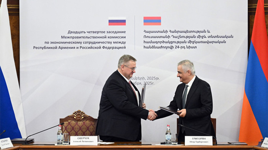 Երեւանում Հայաստանի փոխվարչապետ Մհեր Գրիգորյանի եւ Ռուսաստանի Կառավարության նախագահի տեղակալ Ալեքսեյ Օվերչուկի համանախագահությամբ կայացել է ՀՀ եւ ՌԴ միջեւ տնտեսական համագործակցության միջկառավարական հանձնաժողովի հերթական՝ 24-րդ նիստը։Փոխվարչապետի գրասենյակից հայտնել են, որ միջկառավարական հանձնաժողովի համանախագահները քննարկել են 2024 թվականի դեկտեմբերի 20-ին Մոսկվայում կայացած հանձնաժողովի 23-րդ նիստի որոշումների կատարման արդյունքները։ Վերլուծվել է Հայաստանի եւ Ռուսաստանի միջեւ առեւտրատնտեսական եւ մշակութային-հումանիտար հարաբերությունների ողջ համալիրը, ինչպես նաեւ սահմանվել են երկկողմ եւ բազմակողմ ձեւաչափերում համագործակցության զարգացման հետագա քայլերը։«Կողմերը հատուկ անդրադարձել են էներգետիկայի, արդյունաբերության, տրանսպորտի, գյուղատնտեսության, թվայնացման, առողջապահության, մշակույթի, գիտության, կրթության եւ զբոսաշրջության ոլորտներին։Կայացած բանակցությունների արդյունքներով Մհեր Գրիգորյանը եւ Ալեքսեյ Օվերչուկը ստորագրել են Հայաստանի եւ Ռուսաստանի միջեւ տնտեսական համագործակցության միջկառավարական հանձնաժողովի 24-րդ նիստի արձանագրությունը։ Միջկառավարական հանձնաժողովի համանախագահների մասնակցությամբ ստորագրվել են նաեւ մի շարք երկկողմ փաստաթղթեր՝ Ռուսաստանի եւ Հայաստանի գերատեսչությունների մակարդակով»,- ասվում է հաղորդագրությունում: Tweet Դիտում՝ 308