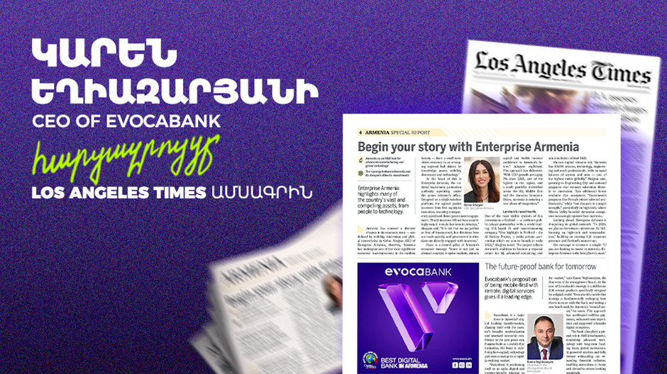 Los Angeles Times (LA Times) միջազգային ամսագրի համարում Evocabank-ի Վարչության նախագահ Կարեն Եղիազարյանը խոսել է բանկի ռազմավարության եւ թվային նորարարությունների մասին։LA Times ամսագրի հետ հարցազրույցում նա անդրադարձել է բանկի «mobile-first» ձեւաչափին, թվային լուծումների կարեւորությանը եւ հաճախորդակենտրոն մոդելի ձեւավորմանը` ժամանակակից բանկային փորձառություն ապահովելու նպատակով։Ամբողջական հոդվածը հասանելի է այստեղ։ Tweet Դիտում՝ 910
