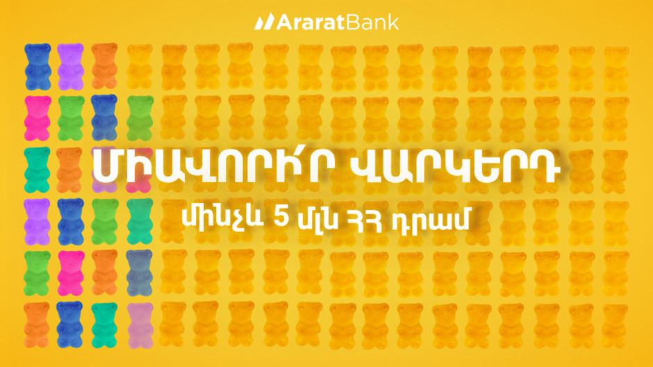 ԱրարատԲանկը հանդես է գալիս շուկայում վարկավորման նոր, գրավիչ առաջարկով․ բոլոր վարկերը մեկում՝ մրցակցային տոկոսադրույքով։ Բանկը տրամադրում է մինչեւ 5 մլն ՀՀ դրամ սպառողական վարկ` այլ ֆինանսական կազմակերպություններում գործող սպառողական վարկերի միավորման եւ տեղափոխման նպատակով, եթե ունեք դրական վարկային պատմություն եւ վարկերի սպասարկման փորձ։ Վարկի պայմաններն են․ • տարեկան տոկոսադրույք՝ 17%, • փաստացի տոկոսադրույք՝ 18․40%, • վարկի գումար՝ մինչեւ 5 մլն ՀՀ դրամ, • կարող է տրամադրվել տեղափոխման ենթակա վարկերից բացի հավելյալ մինչեւ 1,000,000 ՀՀ դրամ, բայց ոչ ավել, քան սույն վարկատեսակով սահմանված վարկի առավելագույն գումարը,• մարման ժամկետը՝ 5 տարի, • հայտի ուսումնասիրության եւ սպասարկման վճար սահմանված չէ։«Պարզեցրեք ձեր կյանքը՝ պարտավորությունները դարձնելով առավել կառավարելի։ Գործող վարկերը միավորեք՝ տեղափոխելով ԱրարատԲանկ` ամսական հիշելով մեկ ամսաթիվ եւ մեկ վճարում»,- ասվում է բանկի հաղորդագրությունում:Նոր վարկային առաջարկի մանրամասներին ծանոթանալու համար այցելեք ԱրարատԲանկի ցանկացած մասնաճյուղ կամ զանգահարեք +374 10 59 23 23:ԱրարատԲանկը վերահսկվում է ՀՀ ԿԲ կողմից: Tweet Դիտում՝ 490