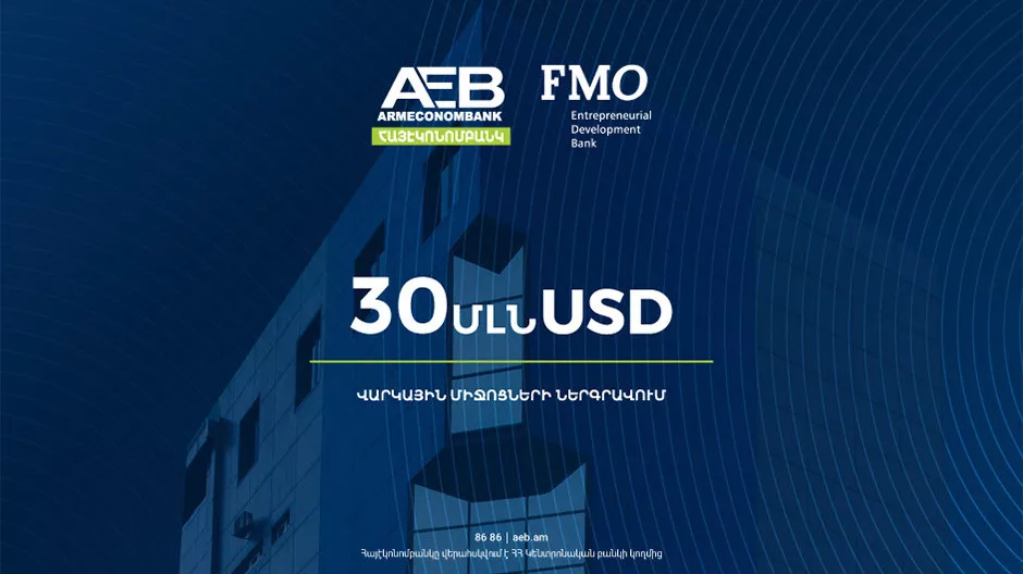 28.11.2025 | 17:26 Նորություններ Հայէկոնոմբանկը եւ FMO-ն ստորագրել են $30 միլիոնի վարկային պայմանագիր