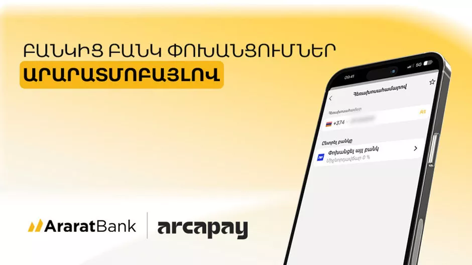 03.09.2025 | 15:26 Նորություններ 5113 ԱրարատԲանկը միացել է ArcaPay-ին փոխանցումների 0% միջնորդավճարով