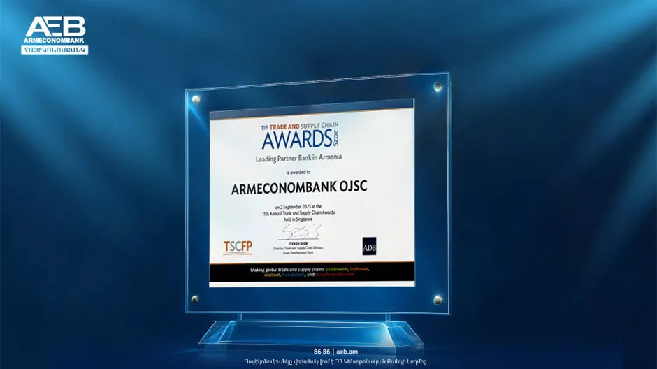 05.09.2025 | 12:42 Նորություններ 5672 Հայէկոնոմբանկը հերթական մրցանակն է ստացել Ասիական Զարգացման Բանկի կողմից
