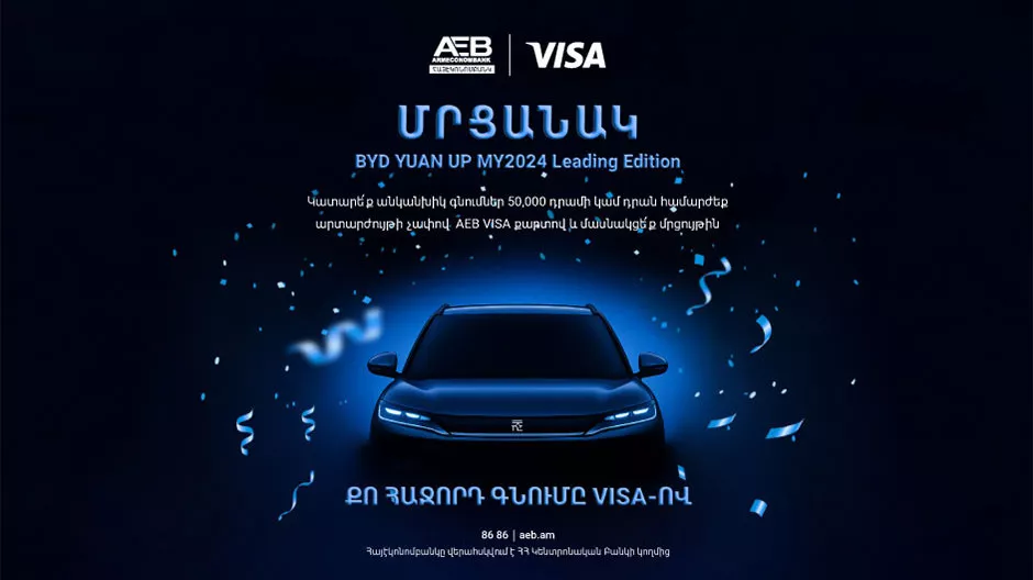 29.08.2025 | 12:30 Նորություններ 6186 Հայէկոնոմբանկը եւ Visa-ն մեկնարկում են համատեղ արշավ. մրցանակը՝ էլեկտրամոբիլ