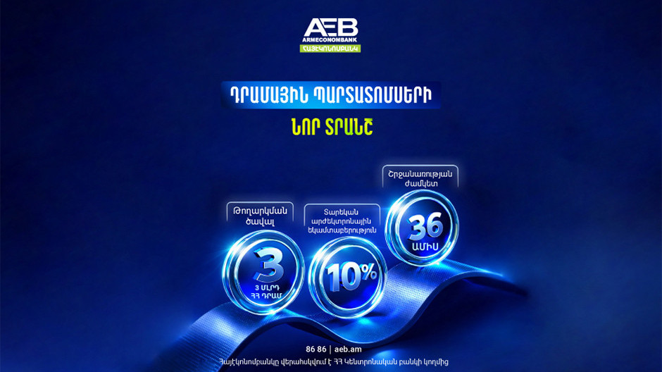 From March 2 to August 2 this year, Armeconombank will place new tranche of its AMD-denominated bonds.The bank reported that the bonds, with a total volume of AMD 3 bln, comprise 300,000 registered, uncertificated, coupon bonds with a nominal value of AMD 10,000 each.The bonds carry an annual coupon yield of 10%, with semiannual coupon payments. The circulation period is 36 months, and the maturity date is March 2, 2029. Following the completion of the placement, the bonds will be listed on the Armenia Stock Exchange and will be quoted by a Market Maker.E-copies of the Bond Program Prospectus (registered by the Central Bank of Armenia) and the Final Terms of the issue are available for download on the bank’s website. Hard copies may be obtained at the bank’s head office (23/1 Amiryan St., Yerevan).The bonds may be purchased by both individuals and legal entities by applying at the bank’s head office or any branch. Armeconombank’s bonds can also be purchased online via the AEB Mobile application and the AEB Online system. The AEB Mobile application can be downloaded here. Armeconombank is supervised by the Central Bank of Armenia. Tweet Views 587