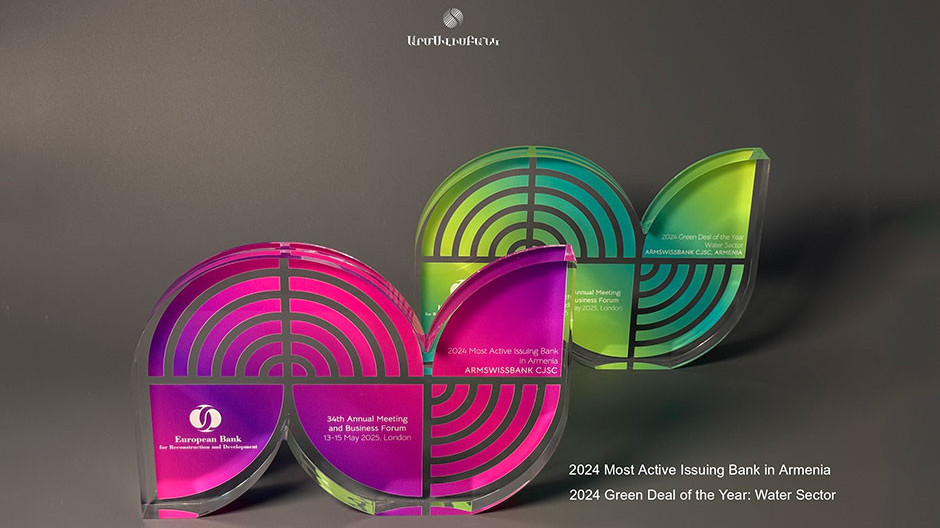 Within the framework of the 34th business conference of the European Bank for Reconstruction and Development (EBRD) in London on May 13-15, 2025, based on the results of the previous year’s growing Trade Finance Program (TFP), ArmSwissBank CJSC was awarded “2024 Most Active Issuing Bank in Armenia” and “2024 Green Deal of the Year: Water Sector”.The bank has been awarded “Most Active Issuing Bank in Armenia” by the EBRD for the 7th year in a row. These awards are a statement of the bank’s productive and year-by-year deepening cooperation with the EBRD within the scope of Trade Finance. Throughout the cooperation, the initial limit set for the bank has increased almost tenfold, reaching USD 28.5 million, which is currently one of the largest limits in the RA banking system.“The bank has always paid special attention to the development of trade finance instruments and the ability to meet customers’ financial needs through internationally accepted tools.Since 2010, the bank has cooperated with the EBRD on trade financing and has also achieved significant success in the SME Lending Program and GCF-GEFF Armenia Energy Efficiency Program. The bank continues deepening cooperation with the EBRD, totaling around USD 50.5 million across all areas,” the bank said in a news release.ArmSwissBank is supervised by the CBA. Tweet Views 6564