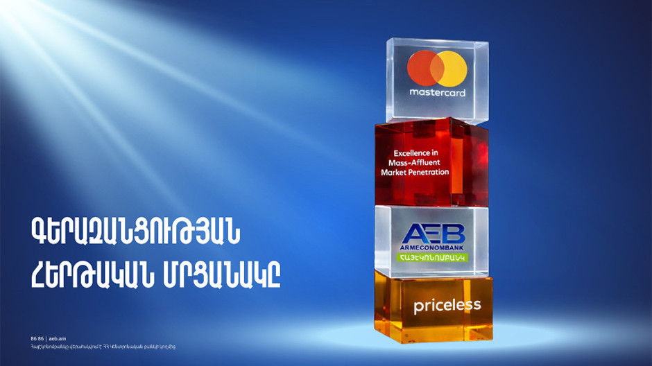 As part of Mastercard’s annual event, Armeconombank received an excellence award for the promotion of premium card products among a broad customer base.The bank reported that 2025 was significant in terms of deepening the long-standing partnership between Armeconombank and Mastercard and elevating the cooperation to a new level. The transaction volume of Mastercard payment cards issued by Armeconombank recorded unprecedented growth, serving as strong evidence of the effectiveness of this collaboration.In partnership with Mastercard, Armeconombank introduced new products and offers that generated considerable interest among customers.Within the framework of a travel package, the AEB Mastercard World premium card was introduced to customers. In addition to travel benefits, it provides the opportunity to obtain an AMD credit line on preferential terms (14% nominal annual interest rate), as well as 0.5%-1% cashback on every cashless transaction.“To promote Armeconombank’s services and payment instruments, joint events and campaigns were carried out in cooperation with Mastercard, generating significant engagement among customers.The partnership between Armeconombank and Mastercard will continue with the aim of making banking products and services more accessible and convenient for customers, while achieving new milestones of success,” the news release reads.Armeconombank is supervised by the Central Bank of Armenia. Tweet Views 369