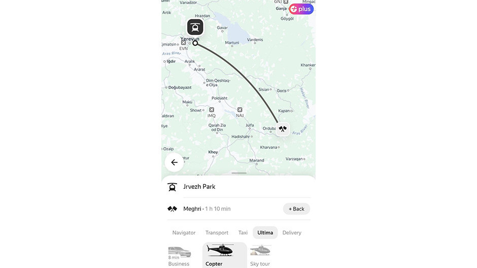 В современном мире умение правильно управлять временем становится важным конкурентным преимуществом. Порой оно ценнее денег. Особенно для тех, чья работа требует быстрых решений и регулярных деловых встреч по всей стране. Здесь удобство и скорость — уже не роскошь, а рабочие инструменты.Именно для таких людей — и не только — Yandex Armenia в июне этого года запустила в приложении Yandex Go премиум-сервис Ultima. Он позволяет всего в несколько кликов заказать вертолет — как по индивидуальному маршруту, так и на обзорную экскурсию по живописным уголкам Армении. Фото: Медиамакс Banks.am протестировал один из маршрутов Ultima, узнал об условиях полетов и выяснил, как работает этот сервис.Время дороже денегДвигатель уже заведен, мы пристегнуты, наушники на месте. Пилот Хачатур Маргарян приветствует нас и желает приятного полета. Он работает в компании Armenian Helicopters, которая является партнером Yandex Go в рамках сервиса Ultima. Фото: Медиамакс «В Армении вертолет — почти идеальное средство передвижения», — говорит пилот.В горах дороги часто извилисты, что увеличивает время в пути. К тому же любая дорога когда-нибудь заканчивается — в отличие от неба. Хачатур Маргарян Фото: Медиамакс «Представьте, вы — бизнесмен, и у вас важная встреча в Мегри, на юге страны. Мы доставим вас туда за 1 час 10 минут — в зависимости от погоды, время может немного измениться. За это же время на машине вы вряд ли доедете даже до Егегнадзора. А если выехать из Еревана в час пик — не исключено, что и из города выбраться не получится», — улыбается Хачатур Маргарян. Фото: Медиамакс Конечно, это удовольствие не из дешевых, но для многих время действительно дороже денег. А еще — это способ добраться на встречу без стресса, наслаждаясь видами Армении с высоты птичьего полета.«Ваш вертолет уже ждет»С запуском Ultima заказать вертолет через Yandex Go стало так же просто, как машину. Доступны два тарифа: Copter и Sky Tour. Фото: Медиамакс Copter — это перелеты по индивидуальному маршруту: из точки А в точку Б в пределах Армении.Sky Tour — готовые туристические маршруты: в Гарнийское ущелье, к водохранилищу Азат, в Дилижан, к Севану и не только. Фото: Медиамакс Цена по Copter рассчитывается в зависимости от расстояния. У Sky Tour — фиксированные тарифы.Заказать полет можно минимум за 2 часа и максимум — за месяц до вылета. Оплата производится заранее с привязанной к приложению банковской карты. После подтверждения заказа с вами свяжутся и сообщат: «Ваш вертолет уже ждет». Фото: Медиамакс Полеты выполняются только в светлое время суток и при хорошей погоде. Перед вылетом все пассажиры проходят инструктаж, взвешивание и проверку документов. Вертолет вмещает до пяти человек, при этом общий вес пассажиров и багажа не должен превышать 410 кг.К полетам допускаются и дети любого возраста — в салоне есть детские кресла. Разрешено брать домашних животных, но только в переносках.Осенний Дилижан и зимние пейзажи Сюника«Вертолет — отличный вариант и для туристов, которые хотят больше времени провести в красивых местах Армении, а не в дороге», — говорит Хачатур Маргарян, указывая на открывшееся внизу Азатское водохранилище. Фото: Медиамакс «Скоро слева будет Симфония камней и Гарнийский храм, а справа — гора Еранос, видите, как горб у верблюда».По его словам, пилоты проходят специальную подготовку и, как гиды, могут отвечать на вопросы н