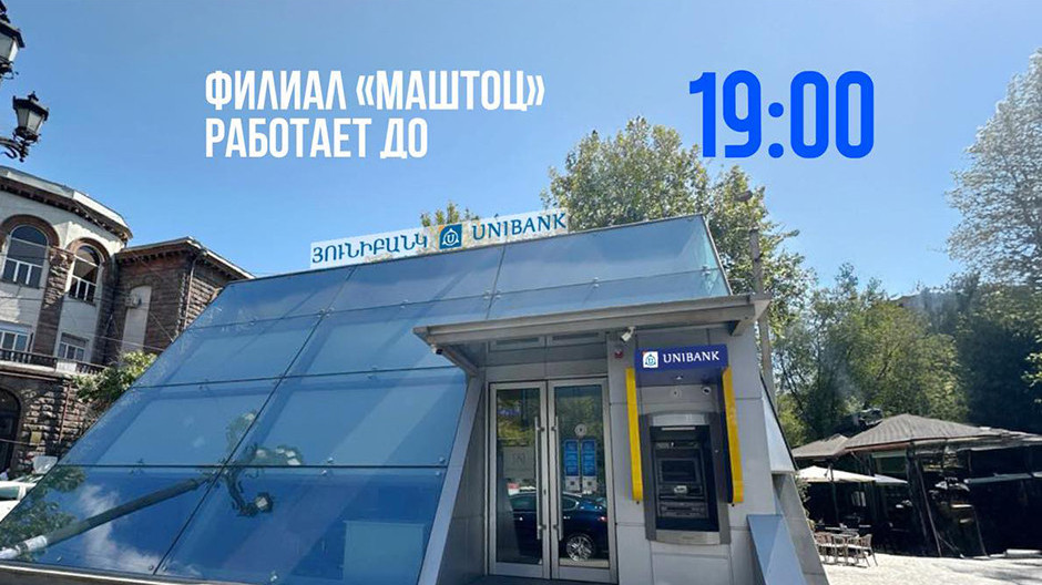 Филиал Юнибанка «Маштоц» перешёл на удлинённый график работы. Теперь клиенты могут обслуживаться в филиале с понедельника по пятницу с 9:30 до 19:00 — в более удобное для них время. Адрес филиала: Ереван, пр. Маштоца 22/2. Удлинённый график работы филиала особенно подходит для тех клиентов, которые заняты в течение дня и предпочитает решать финансовые вопросы вечером. Такое решение — ещё один шаг Юнибанка навстречу клиентам и часть стратегии заботы о них. Команда Юнибанка постоянно работает над повышением качества обслуживания, учитывая потребности всех категорий клиентов и устанавливая гибкий график работы для филиальной сети. В частности, филиал «Далма» Юнибанка работает без выходных с 12:30 до 20:30, а филиал «Гарегин Нжде» - в будние дни с 10:30 до 21:30, а в субботу — с 11:30 до 21:30. Филиал «Исаков» обслуживает клиентов с понедельника по пятницу с 10:00 до 18:00. Филиал «Звартноц» работает круглосуточно, без выходных. В то же время Юнибанк активно развивает мобильные приложения как для физических, так и для юридических лиц, являясь одним из лидеров финтеха в Армении. Это важное направление развития для банка, поскольку всё больше клиентов предпочитает управлять своими средствами онлайн. Tweet Просмотры 5404