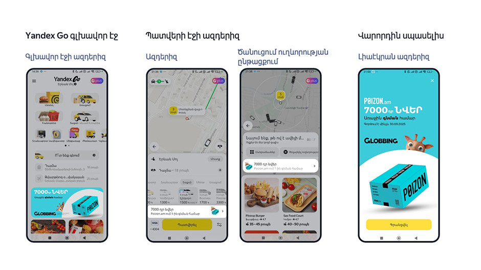 На первом мероприятии Yandex Ads в Армении «Yandex Ads Business Connect» эксперты компании и представители Globbing поделились результатами совместного проекта в экосистеме городских сервисов Yandex Go, которой ежемесячно пользуются более миллиона жителей Армении.В конце июня Globbing запустила на рынке маркетплейс Poizon.am. Для того чтобы увеличить знание о бренде среди жителей Армении, с 1 по 30 сентября партнеры запустили комплексную брендинговую кампанию в Yandex Go. Совместный эффект от летних флайтов в других каналах и экосистемного проекта позволил увеличить продажи на маркетплейсе в семь раз в сентябре, а инвестиции в продвижение в Yandex Go окупились за 38 дней. Механика кампании Чтобы нативно интегрировать коммуникации бренда в привычный путь пользователя, выбрали несколько вовлекающих маркетинговых форматов. Все они вели на лендинг с предложением для новых клиентов — 7 000 драмов в подарок за первую покупку. На главной странице приложения Yandex Go показывали заметный баннер с предложением в визуальном стиле бренда, выделяющийся на фоне интерфейса и привлекающий внимание широкой аудитории пользователей. Тем, кто переходил к заказе такси через Yandex Go, на этапе выбора деталей поездки и класса автомобиля показывали лаконичный баннер, из которого пользователи переходили на посадочную страницу с предложением. Похожий формат также интегрировали в экран со статусом поездки после оформления заказа. Для расширения охвата продвижения использовали интерактивную брендинговую механику — 3D-объект на картах в Yandex Go. Аудитория видела на картах маскота Globbing — жирафа Джорджа, нажав на которого, пользователи попадали на лендинг с предложением бренда. РезультатыПо итогам экосистемной маркетинговой кампании удалось охватить каждого третьего клиента Yandex Go — более 350 тысяч уникальных пользователей. Аудитория активно вовлекалась в коммуникацию с брендом Globbing, все форматы показали высокий уровень кликабельности — CTR больше 3%. Самым эффективным оказался баннер на главной — пользователи нажимали на каждый десятый показ объявления, CTR в переход на полноэкранный формат рекламы превысил 10%. При этом несмотря на многоступенчатую коммуникацию, клиенты не пропускали предложение бренда — конверсия в переход из полноэкранного формата на сайт компании составила 7,41%. Микс рекламной кампании с предыдущими флайтами показал высокий результат: продажи в сентябре выросли в семь раз по сравнению с августом. При этом пользователи, пришедшие из кампании в Yandex Go, активно совершали повторные покупки. Инвестиции в экосистемное продвижение окупились быстрее плана — всего за 38 дней. «Сегодня Yandex Go открывает бизнесам в Армении доступ к миллионной активной аудитории, которая ежедневно взаимодействует с нашими сервисами. По сути, это миллион потенциальных клиентов рядом. И мы особенно рады, что совместный проект с Globbing на практике подтвердил силу экосистемного подхода и нестандартных решений для роста наших партнёров», — сказал коммерческий директор Yandex Ads в Армении и Грузии Тигран Варданян. Tweet Просмотры 341